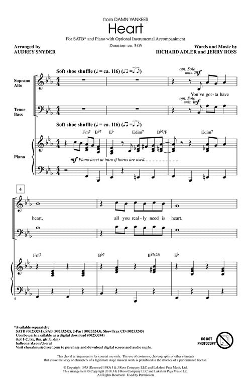 From the iconic musical Damn Yankees here is a song about success and what it takes to have it--heart and hope. A feel good song for any concert.