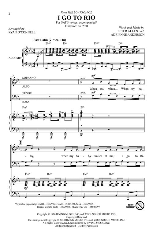 I Go to RioPublisher: Shawnee PressCategory: ChoralSeries: ChoralFormat: CDWritten by Peter Allen and a hit for the band Pablo Cruise in 1979, this new arrangement for mixed and women's voices will heat up your concert with...Regular price $35.99 -