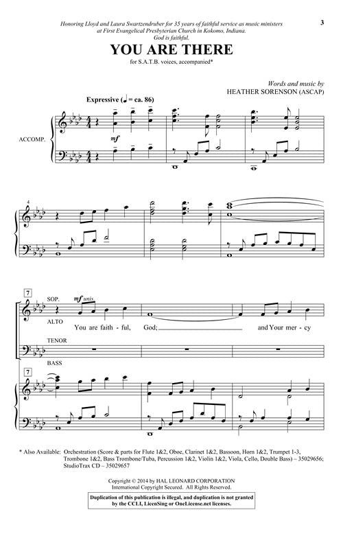 You Are TherePublisher: Shawnee PressCategory: ChoralSeries: Shawnee SacredFormat: CDUses: General Scripture: Lamentations 3:22-23, Psalm 36:5 This is an original song that is an intimate commentary on the walk of faith. A beautiful melody filled with expressive...Regular price $32.99