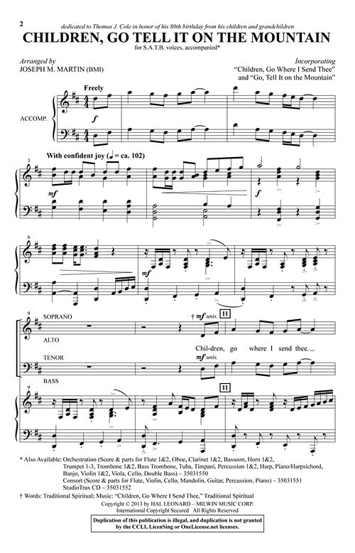 Children, Go Tell It on the MountainPublisher: Shawnee PressCategory: ChoralSeries: Shawnee SacredFormat: CDHere is the quintessential concert closer! This pairing of Children, Go Where I Send Thee and Go Tell It on the Mountain is just...Regular price $32.99 -