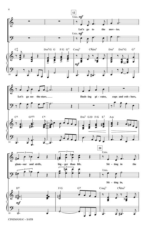 Cinemania! Movie Blockbusters in Concert(Medley)Publisher: Hal LeonardCategory: ChoralSeries: Pop Choral SeriesFormat: CDCelebrate Hollywood's recent past with this 16-minute retrospective of movie magic in three flexible sections. Featuring songs featured in Shrek, Twilight, Enchanted, Slum Dog Millionaire,...Regular price $75.99 -