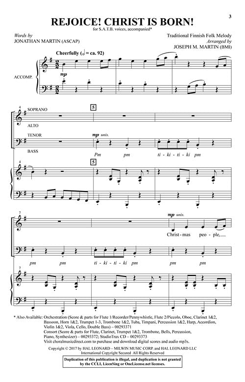 Rejoice! Christ Is Born!Publisher: Shawnee PressCategory: ChoralSeries: Shawnee SacredFormat: CDThis unique Christmas piece is sure to be a favorite holiday opener or encore. Using a dazzling vocal percussion effect as a rhythmic device, this folk song...Regular price $35.99