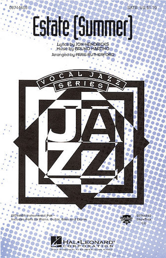 Estate (Summer)Publisher: Hal LeonardCategory: ChoralSeries: Jazz ChoralsFormat: CDA favorite of jazz artists around the globe, this setting features a great groove and lyrics that sing of summer love lost.Available separately: SATB, IPak(R) and ShowTrax CD. Performance...Regular price $27.99