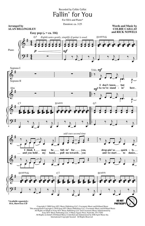 Fallin' for YouPublisher: Hal LeonardCategory: ChoralSeries: Pop Choral SeriesFormat: CDPop sensation Colbie Caillat scores again with this appealing charmer that soared up the pop charts in 2009! Available separately: SSSA, ShowTrax CD. Duration: ca. 3:25.Inventory #...Regular price $32.99 -