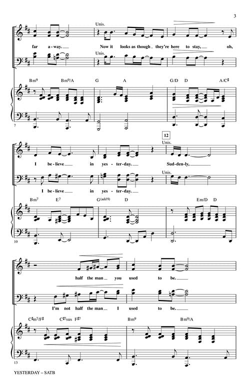 YesterdayPublisher: Hal LeonardCategory: ChoralSeries: Pop Choral SeriesFormat: CDThe #1 pop hit for four weeks in 1965, this iconic Beatles song is the most recorded song of all time, making it a standard that transcends generational labels....Regular price $29.99 -