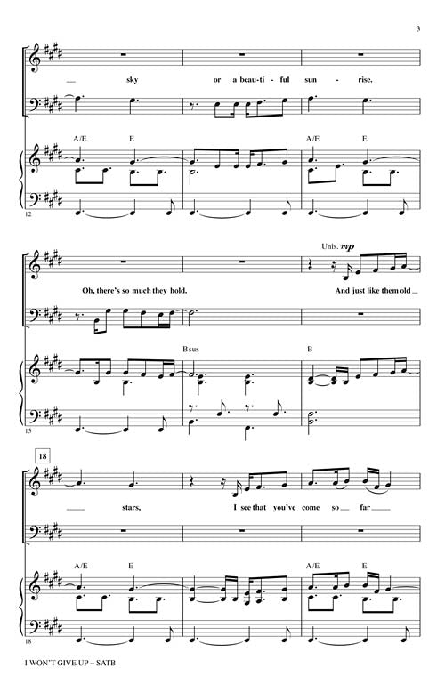 I Won't Give UpPublisher: Hal LeonardCategory: ChoralSeries: Pop Choral SeriesFormat: CDJason Mraz strikes gold once again with this guitar driven ballad that soared up the Pop Charts in early 2012. Opening with a simple, heartfelt verse,...Regular price $32.99 -