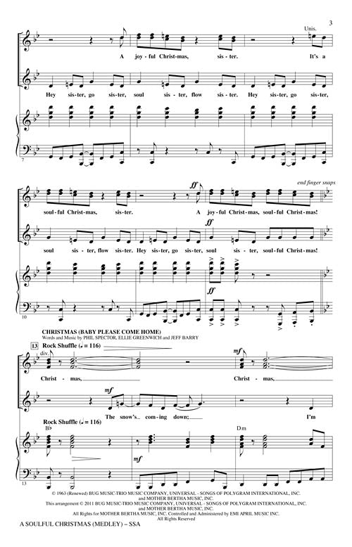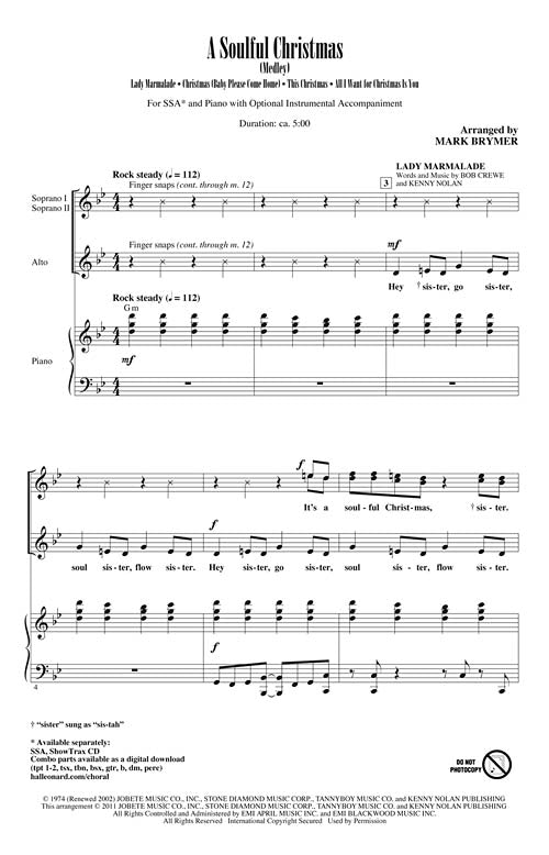 A Soulful Christmas(Medley)Publisher: Hal LeonardCategory: ChoralSeries: Secular Christmas ChoralFormat: CDHey soul sister, you'll love this sweet R&B flavored medley! Add your best moves and you'll have a wonderful showcase for girls'groups of all ages. Five minutes...Regular price $65.99 -