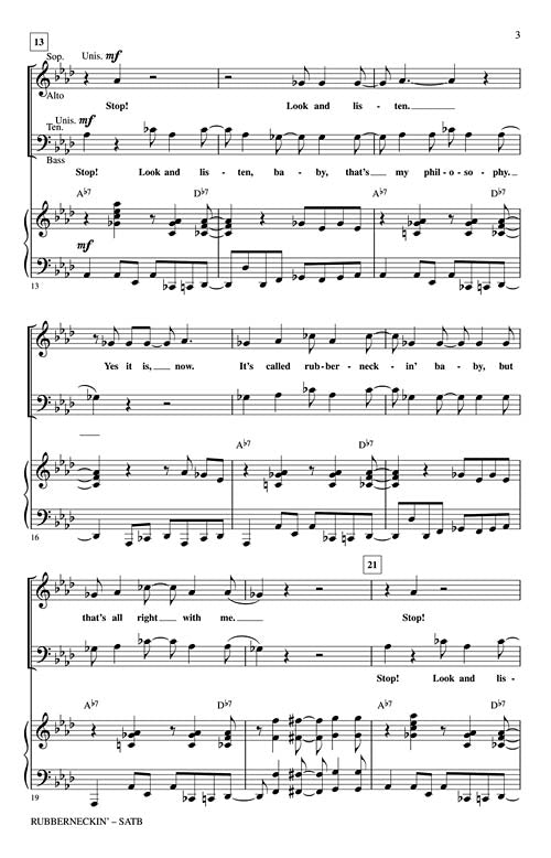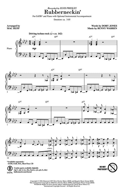 Rubberneckin'Publisher: Hal LeonardCategory: ChoralSeries: Pop Choral SeriesFormat: CDNewly remixed with a driving guitar and backbeat and a twangy Duane Eddy-style intro, this Elvis pop hit from 1969 will be a big hit today's kids and audiences....Regular price $29.99 -