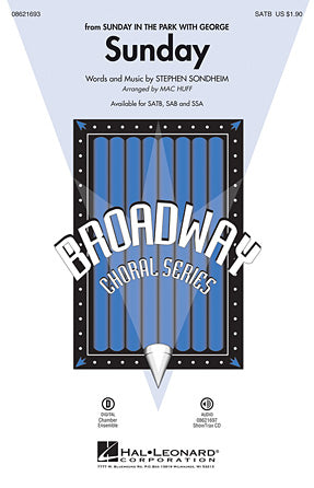Sundayfrom Sunday in the Park with GeorgePublisher: Hal LeonardCategory: ChoralSeries: Broadway ChoralFormat: CDFrom Stephen Sondheim's Pulitzer Prize-winning musical Sunday in the Park with George, this song closes Act I. A powerful affirmation of love, art and...Regular price $35.99 -