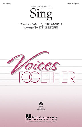 SingPublisher: Hal LeonardCategory: ChoralSeries: Voices TogetherFormat: CDA cool walking bass line, great swing style and fun scat lyrics make this Steve Zegree arrangement of Joe Raposo's Sesame Street favorite a perfect choice for younger choirs. A...Regular price $35.99 -