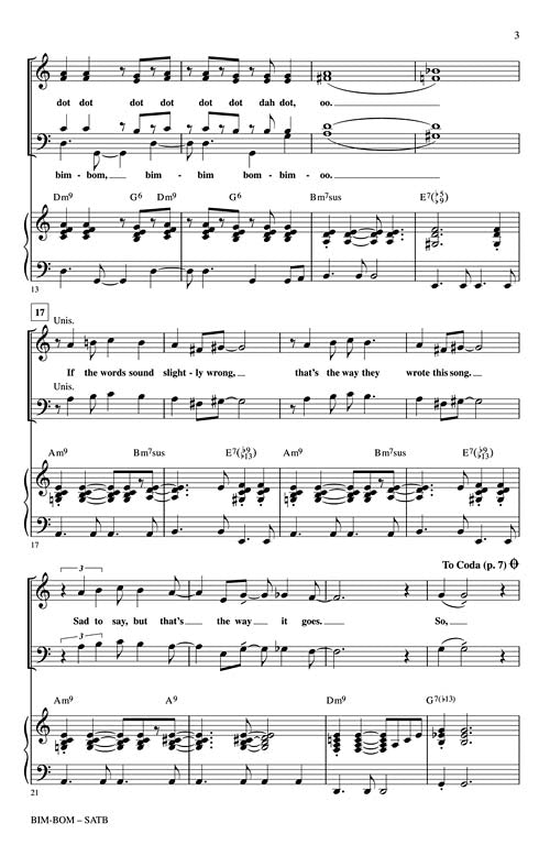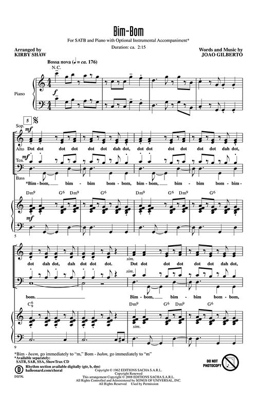 Bim-BomPublisher: Hal LeonardCategory: ChoralSeries: Jazz ChoralsFormat: CDThis great bossa nova classic by the Brazilian artist Joao Gilberto completely captures the flavor of the 1960s. Smooth lines and the jazz infused samba give this setting its special...Regular price $29.99 -