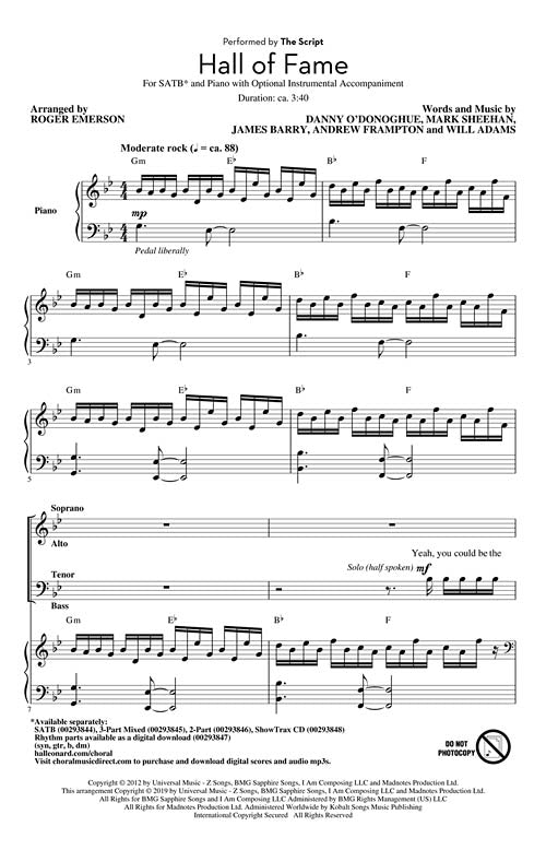 Hall of FamePublisher: Hal LeonardCategory: ChoralSeries: Pop Choral SeriesFormat: CDHere is a song by the Script featuring will.i.am about following dreams and making an impact on the world. Powerful lyrics and a strong message wrapped in...Regular price $32.99