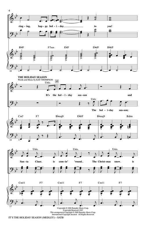 It's the Holiday SeasonPublisher: Hal LeonardCategory: ChoralSeries: Discovery Christmas ChoralFormat: CDThis 4-minute medley of popular holiday songs is a sparkling selection for a concert finale or community events and may be performed with choir alone or...Regular price $59.99 -