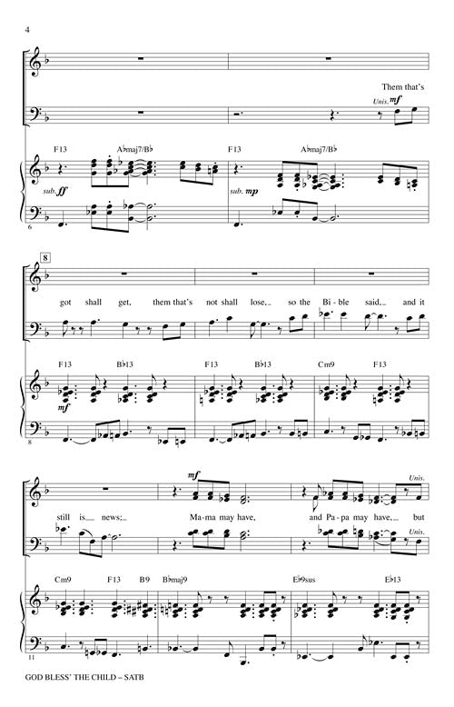 God Bless' The ChildPublisher: Hal LeonardCategory: ChoralSeries: Jazz ChoralsFormat: CDOne of the most soulful ballads ever written, this standard has been recorded by artists ranging from Billie Holiday to Blood, Sweat & Tears. This arrangement features...Regular price $32.99