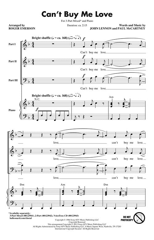 Can't Buy Me Love CD VoiceTrax CD Celebrate 50 years of the Beatles with this energetic song from 1964! Set in a rock style swing, the voices trade off, and the blues chord progression makes it...Regular price $35.99