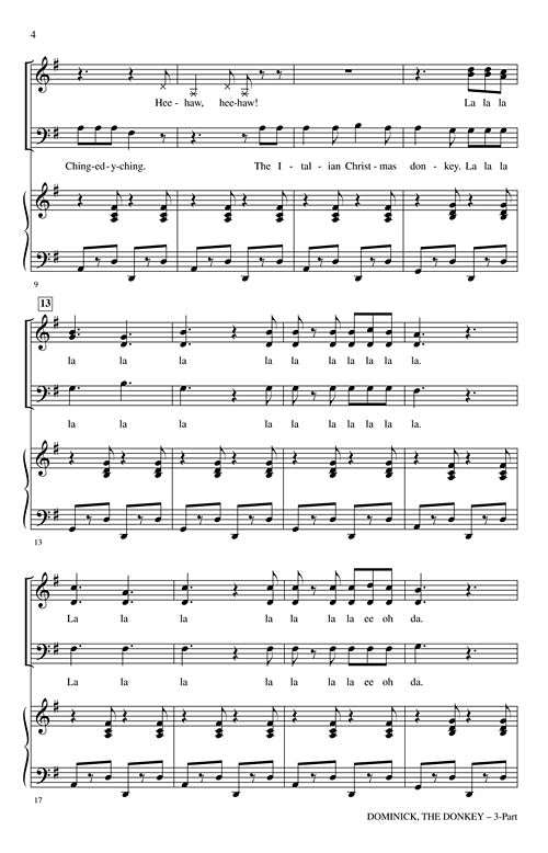 Dominick, the DonkeyPublisher: Shawnee PressCategory: ChoralSeries: ChoralFormat: CDA little donkey helps Santa Claus bring presents to children in Italy in this delightful novelty arrangement. Various Italian words and expressions are used throughout with easy part writing...Regular price $35.99
