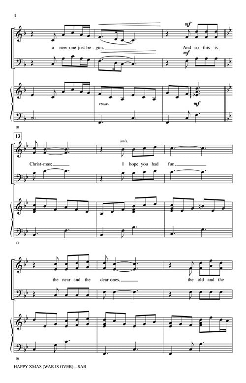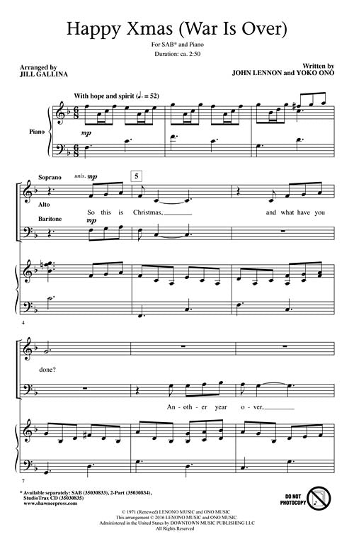 Happy Xmas (War Is Over)Publisher: Shawnee PressCategory: ChoralSeries: Shawnee PressFormat: CDSo this is Christmas, and what have you done? Another year over, a new one just begun. The timeless music and lyrics by John Lennon and...Regular price $35.99 -