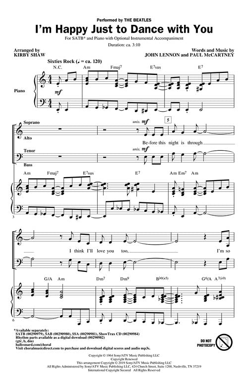 I'm Happy Just to Dance with YouPublisher: Hal LeonardCategory: ChoralSeries: Pop Choral SeriesFormat: CDWritten for the film soundtrack to the Beatles' movie, A Hard Day's Night, this upbeat song with happy and positive lyrics is as...Regular price $32.99 -