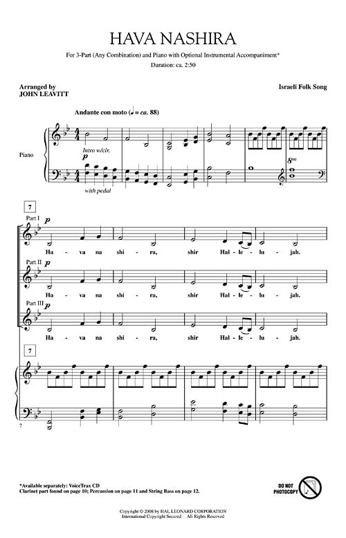 Hava NashiraArranger: John LeavittItem# 08552041Sheet Music Condition: New Item# 08552041 Authorized DealerRegular price $29.99 -