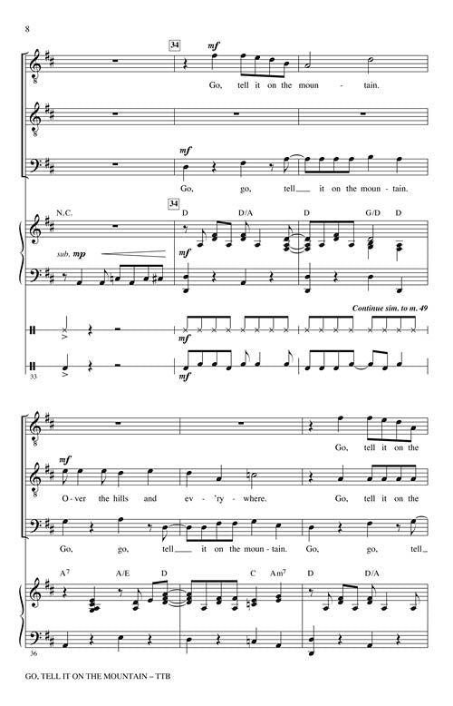 Go, Tell It on the MountainDiscovery Level 3Publisher: Hal LeonardCategory: ChoralSeries: Discovery ChoralFormat: CDLayered voice parts open and close this fresh and contemporary spiritual setting with a fun male voice style that will be instantly appealing...Regular price $23.99 -