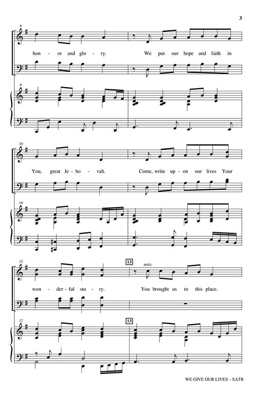 We Give Our LivesPublisher: Shawnee PressCategory: ChoralSeries: Shawnee SacredFormat: CDUses: General, Lent, Youth Choir, Church Anniversary Scripture: Psalm 67:3; Psalm 30:4; Romans 12:1 A clarion call to commitment is at the heart of this ballad of...Regular price $32.99 -