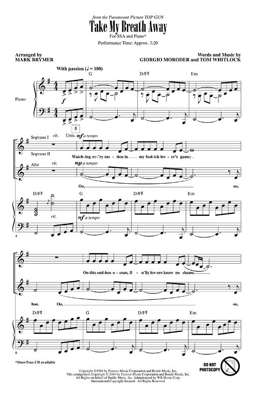 Take My Breath Away ShowTrax CD Pop Choral Series