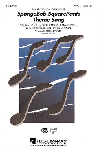 SpongeBob SquarePants (Theme Song)Publisher: Hal LeonardCategory: ChoralSeries: ChoralFormat: CDAnchors aweigh! Kids of all ages will enjoy singing about this famous underwater inhabitant.Available separately: 2-Part and ShowTrax CD. Performance Time: Approx. 2:00.Inventory # : 08744289UPC: 73999371918ISBN: Width:...Regular price $27.99 -