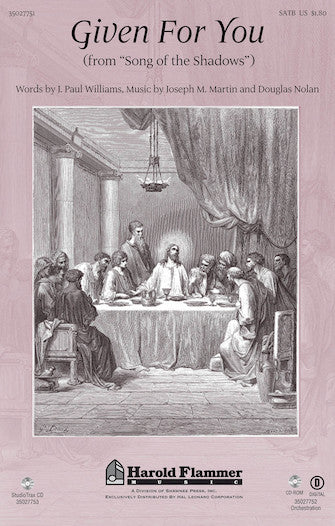 Given for Youfrom Song of the Shadows New EditionPublisher: Shawnee PressCategory: ChoralSeries: Shawnee SacredFormat: CDUses: Communion, Maundy Thursday, Holy Week, general Scripture: Luke 22:19 The upper room is the scene for this tender song for communion...Regular price $32.99 -