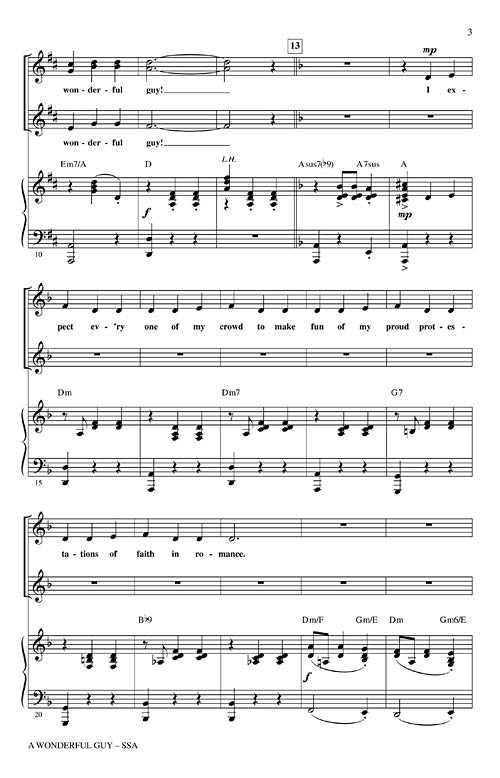 A Wonderful Guy(from South Pacific)Publisher: Hal LeonardCategory: ChoralSeries: Broadway ChoralFormat: CDFrom the Broadway musical South Pacific, this song sung by the character Nellie Forbush is brimming with joy and youthful abandon as she sings of her...Regular price $27.99 -
