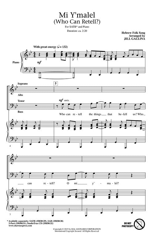 Mi Y'malelPublisher: Shawnee PressCategory: ChoralSeries: ChoralFormat: CDCelebrate Hanukkah with this energetic Hebrew folk song arranged for every age level. The spirited story of brave Maccabeus is told in English and Hebrew text with a lively accompaniment...Regular price $32.99 -
