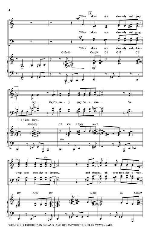 Wrap Your Troubles In Dreams (And Dream Your Troubles Away)Publisher: Hal LeonardCategory: ChoralSeries: Jazz ChoralsFormat: CDTony Bennet, Bing Crosby and Frank Sinatra all recorded this 1930s classic. Great harmonies and vocal textures are highlighted in this...Regular price $27.99