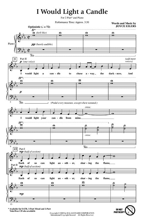 I Would Light a CandleComposer: Joyce EilersItem# 08551832Sheet Music Condition: New Item# 08551832 Authorized DealerRegular price $27.99 -