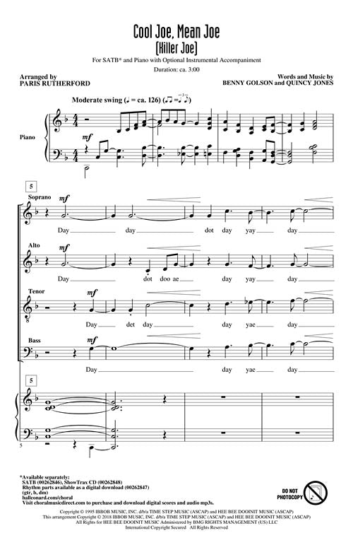 Cool Joe, Mean Joe (Killer Joe)Publisher: Hal LeonardCategory: ChoralSeries: Jazz ChoralsFormat: CDOriginally a hard bop instrumental by sax great Benny Golson, Quincy Jones brought his genius to the song when he penned lyrics to this melody....Regular price $32.99 -
