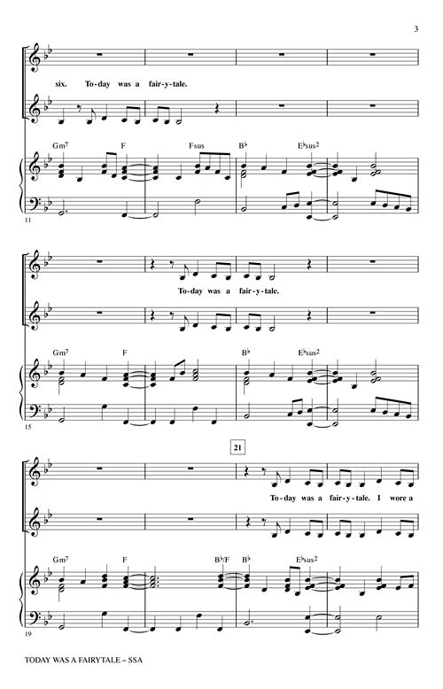 Today Was a FairytalePublisher: Hal LeonardCategory: ChoralSeries: Pop Choral SeriesFormat: CDTaylor Swift continues racking up the hits! This latest soared to the top of the Hot 100 and was featured on the soundtrack to the film...Regular price $32.99 -