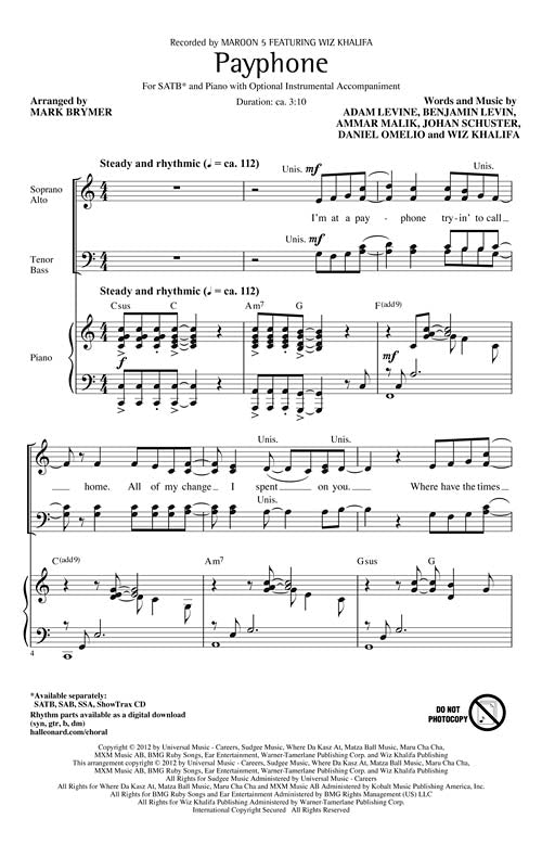 Hal Leonard Payphone Showtrax Cd Showtrax Cd