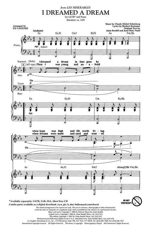 I Dreamed a Dream(from Les Misérables)Publisher: Hal LeonardCategory: ChoralSeries: Broadway ChoralFormat: CDShowTrax CD for I Dreamed a Dream from Les Misérables.Inventory # : 08621646UPC: 884088417758ISBN: 1423467337Width: 5"Length: 5"Height: 0.149"Product Weight: 0.1 lbs.Number of Pages: Definitions For...Regular price $29.99 -