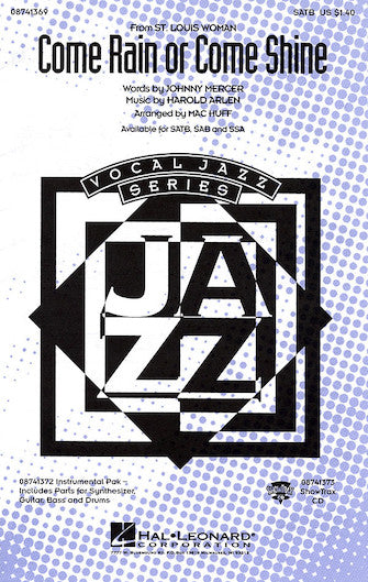 Come Rain or Come ShinePublisher: Hal LeonardCategory: ChoralSeries: Jazz ChoralsFormat: CDOne of the greatest songs ever written, this Harold Arlen/Johnny Mercer standard really cooks in this uptempo swing setting. Available: SATB, SAB, SSA, Instrumental Pak, ShowTrax...Regular price $23.99