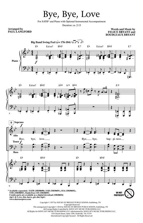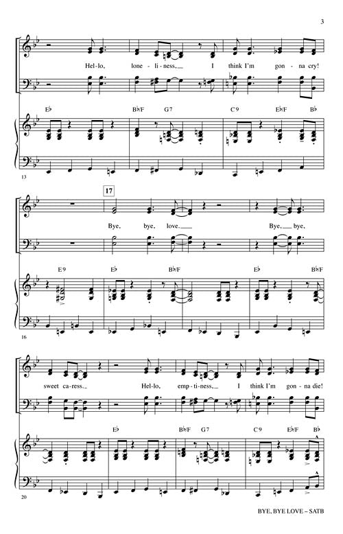 Bye, Bye LovePublisher: Shawnee PressCategory: ChoralSeries: Shawnee PressFormat: CDRay Charles was one-of-a-kind and so was his music. This arrangement is based on his rousing performance of the Everly Brothers' hit; a song considered one of the...Regular price $32.99 -