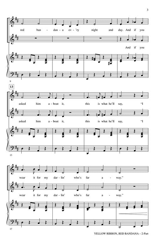 Yellow Ribbon, Red Bandana(incorporating She Wore a Yellow Ribbon and Red River Valley)Publisher: Shawnee PressCategory: ChoralSeries: Shawnee PressFormat: CDWhat a fun folk song selection! This lively and novel arrangement uses an original song along with two...Regular price $32.99 -