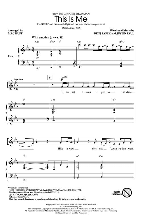 This Is Me (from The Greatest Showman) ShowTrax CD Pop Choral Series