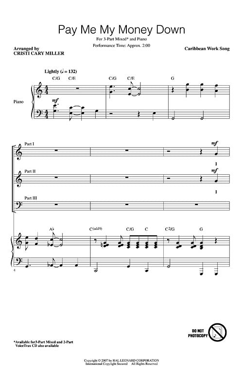 Pay Me My Money DownArranger: Cristi Cary MillerItem# 08551939Sheet Music Condition: New Item# 08551939 Authorized DealerRegular price $27.99 -