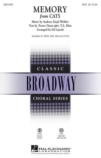 Memoryfrom CatsPublisher: Hal LeonardCategory: ChoralSeries: Broadway ChoralFormat: CDOne of the most popular Broadway choral arrangements of all time, this selection is a fantastic selection for graduation and many more concert occasions.Inventory # : 08621562UPC: 884088216559ISBN: Width:...Regular price $29.99 -
