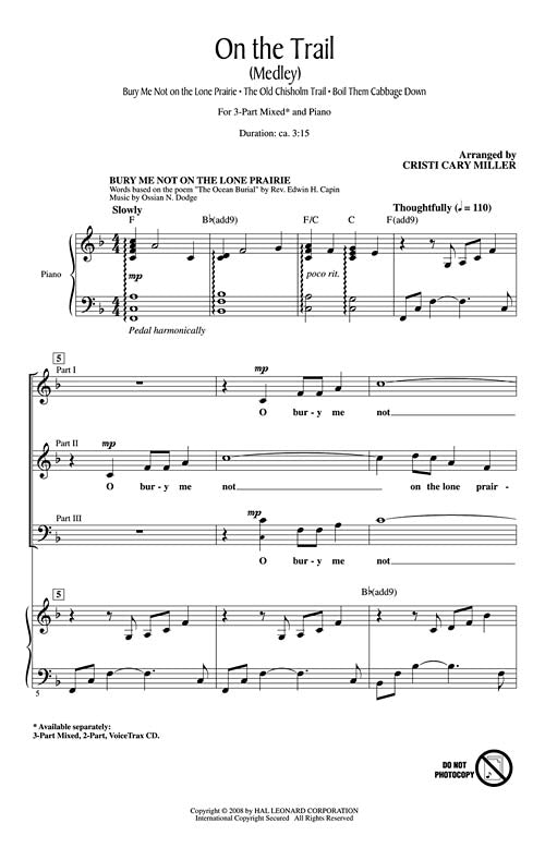 On the Trail (Medley)Arranger: Cristi Cary MillerItem# 08552075Sheet Music Condition: New Item# 08552075 Authorized DealerRegular price $29.99 -