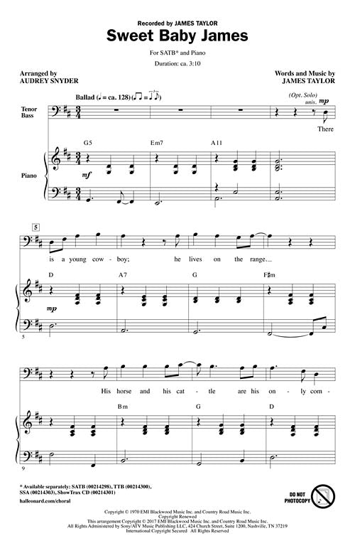 Sweet Baby James Showtrax Cd Pop Choral Series