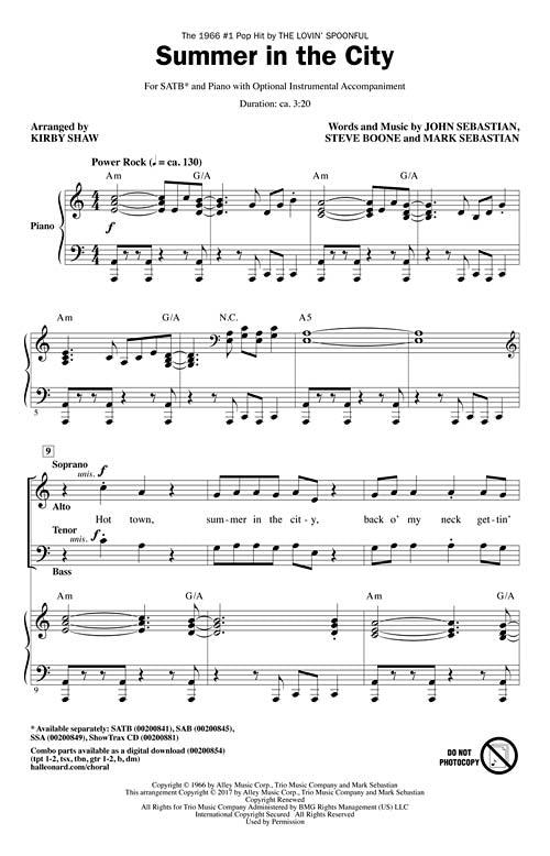 Summer in the City CD ShowTrax CD The 1966 pop hit by The Lovin' Spoonful is the iconic summer song! From the gritty refrain to the hushed excitement of the bridge, this selection will unite the...Regular price $32.99 -