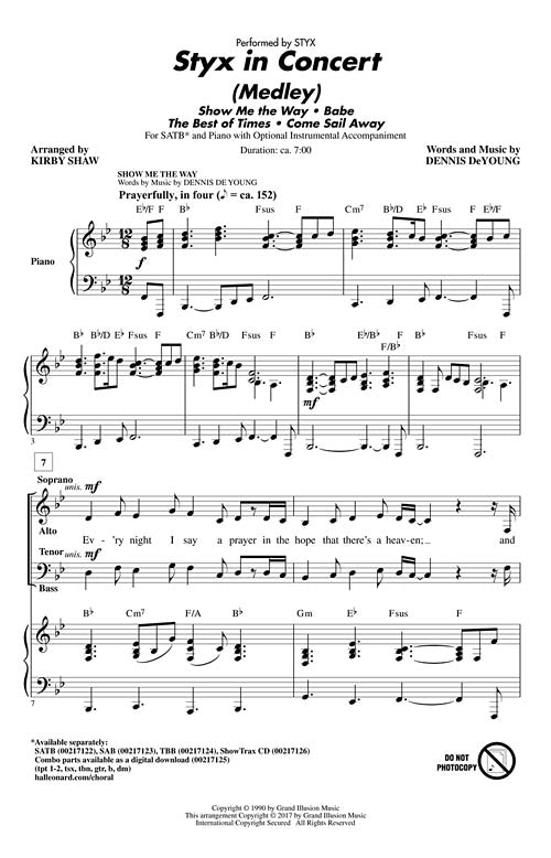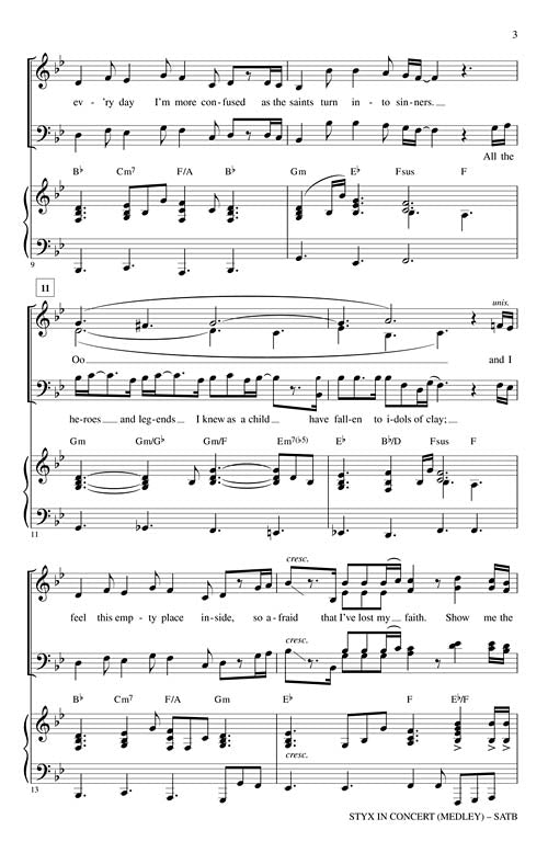 Styx in Concert Medley CD ShowTrax CD This 7-minute medley of songs from the band Styx features the qualities that marked their success: guitar driven pop/rock with keyboards and full showstopping vocals. Includes these top hits:...Regular price $47.99 -