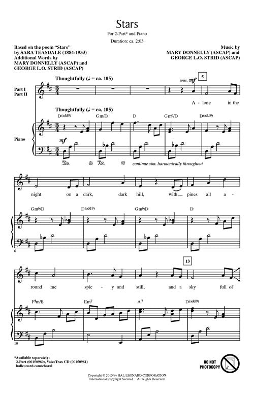 Stars Discovery Level 1 CD VoiceTrax CD This reflective poetry by Sara Teasdale forms the lyric framework for this lovely 2-Part setting. Ideal for encouraging a light head voice tone, phrasing and dynamic contrast in young...Regular price $27.99 -