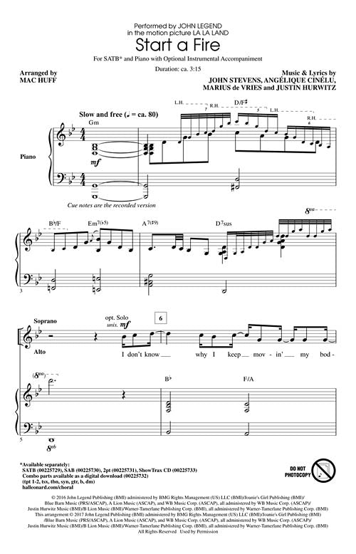 Start a Fire from La La Land CD ShowTrax CD This signature song by John Legend is from the 2016 cinematic tribute to Los Angeles La La Land and captures the funny and charming mood of...Regular price $32.99