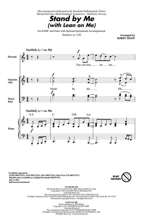 Stand By Me (with Lean On Me) CD ShowTrax CD Two top inspirational songs of the 60s and 70s are seamlessly paired in this setting that will lift your singers to new heights. Fantastic closer or...Regular price $32.99 -