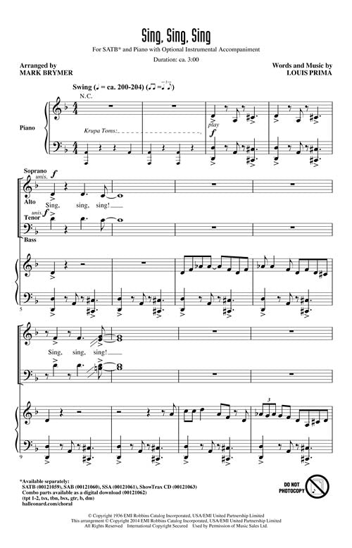 Sing, Sing, Sing CD ShowTrax CD Here is the great tune from the big band era in a contemporary vocal jazz setting. Hot rhythm and horns back up the vocals for a pop/jazz/show choir selection extraordinaire!...Regular price $32.99 -